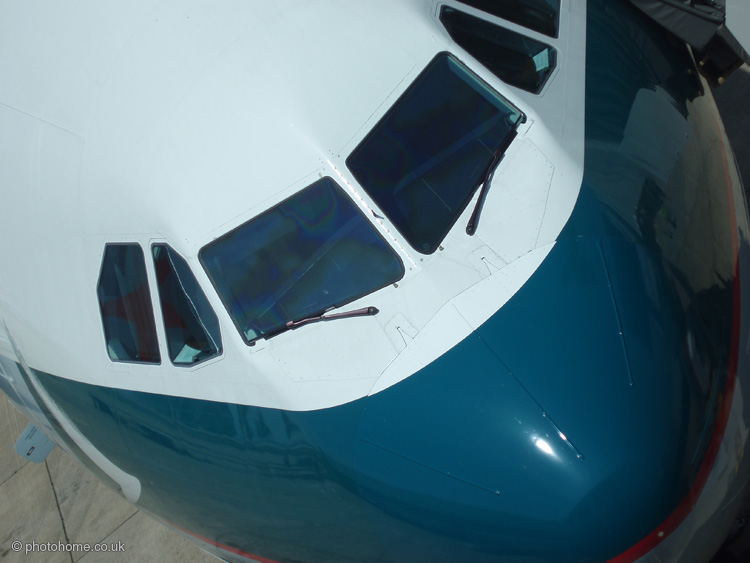 close up on the front of an airliner