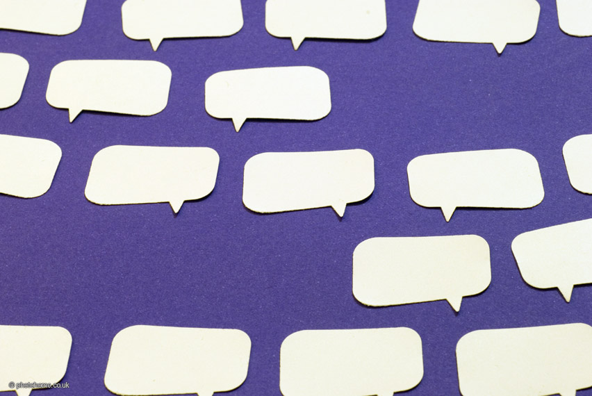 white speech bubbles cut out of card